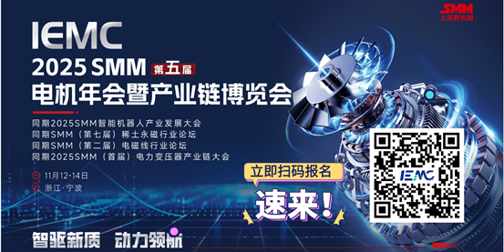 2025 SMM(第五届)电机年会暨产业链博览会将于2025年11月12-14日在宁波国际会议中心盛大开幕!本届展会以“智驱新质,动力领航”为主题,聚焦电机全产业链顶尖企业与前沿技术,携手200+展商倾力打造10000㎡+展览面积全电机品类、电机控制系统及装置、测试仪器及设备、线圈配套及材料、机器人五大核心展区。